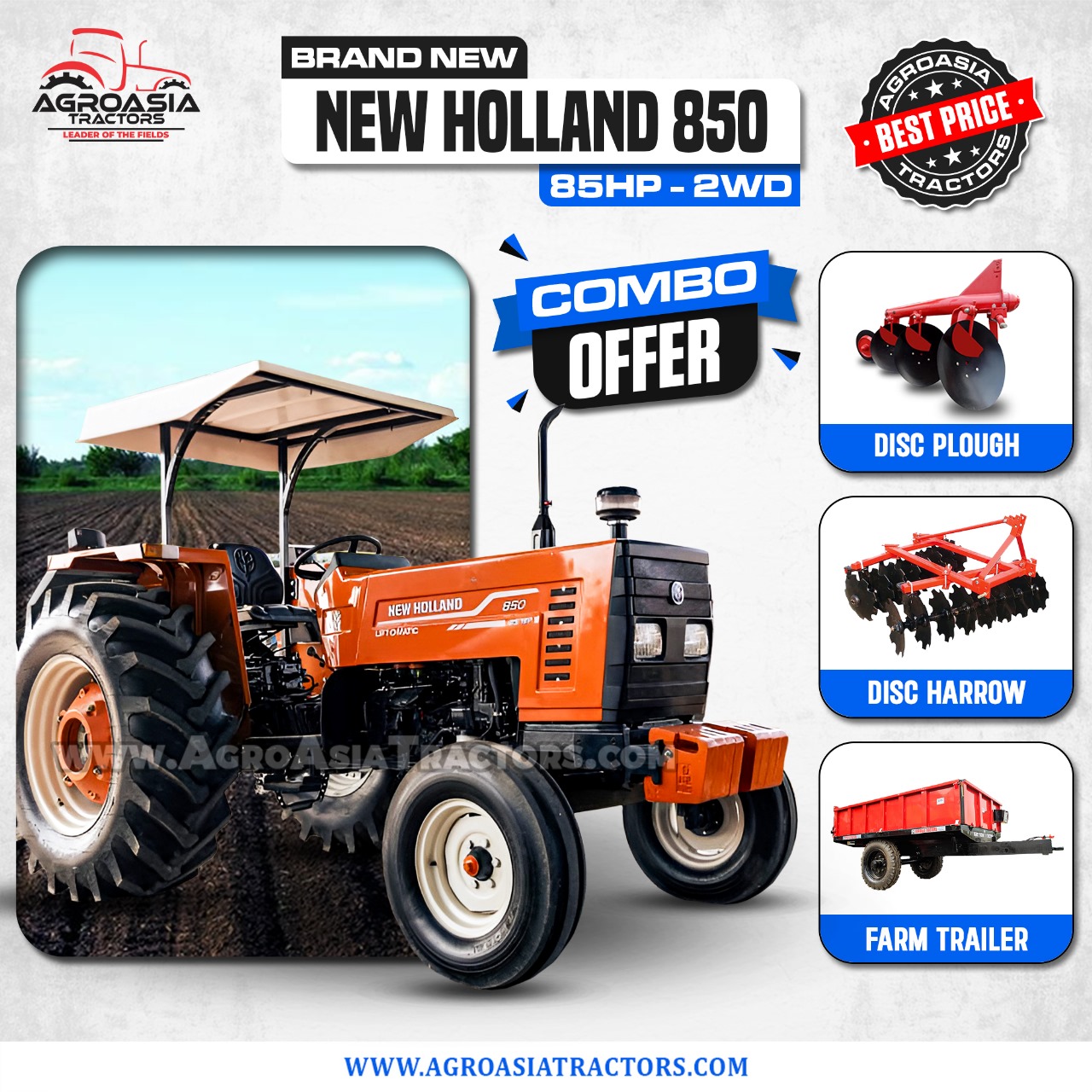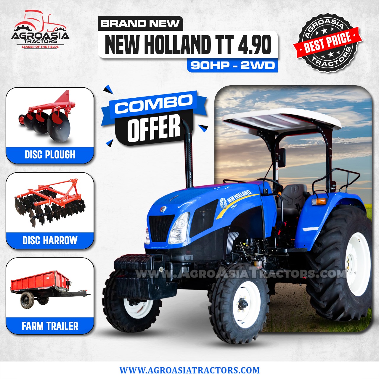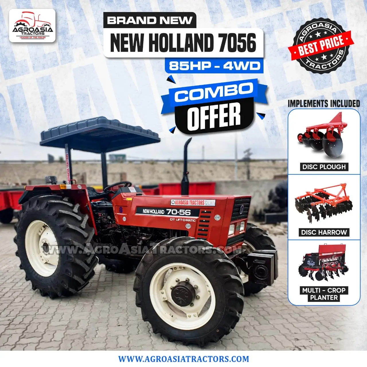 New Holland NH 480 (55HP – 2WD), New Holland NH 640 (75HP – 2WD), New Holland NH Dabung (85HP – 2WD), New Holland NH 7056 (85HP – 2WD), New Holland NH TT75 (75HP – 2WD & 4WD), New Holland NH 850 (85HP – 2WD), New Holland NH Al-Ghazi (65HP – 2WD), New Holland NH TD95 (95HP – 2WD & 4WD), New Holland NH TT4.90 (90HP – 2WD & 4WD)